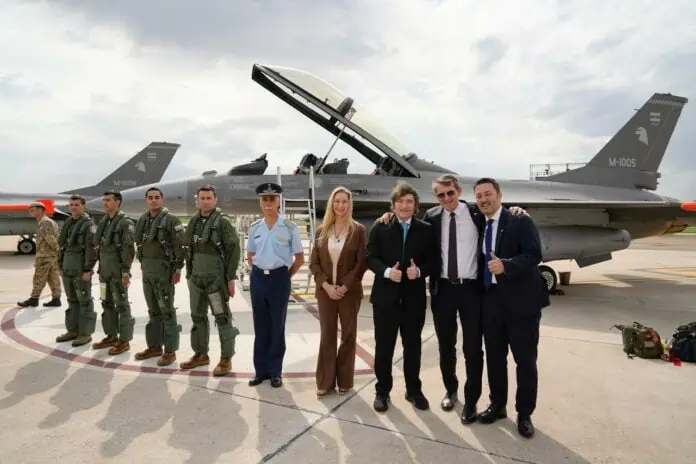 “Hoy, cientos de miles de argentinos pudieron levantar la mirada y ver por primera vez sus ángeles protectores surcando el cielo. Los F-16 son los nuevos custodios del espacio aéreo argentino”, expresó el presidente Javier Milei al encabezar esta mañana la ceremonia oficial de recepción de los aviones F-16 destinados a la Fuerza Aérea Argentina, en el Área Material Río Cuarto, Córdoba.
