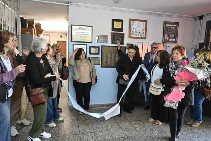 La actividad se llevó adelante en horas de la mañana y contó con las palabras de las ex docentes y alumnas: Mirta Rodríguez, Susana Ugarte y Laura Tomazo. Para finalizar la actividad, el intendente y los presentes descubrieron una placa recordatoria de la promoción 1975.