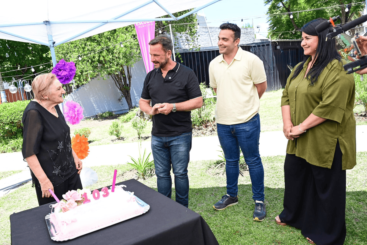 Una tarde especial se vivió en el Hogar de Ancianas Eva Perón, donde la alegría y la emoción fueron protagonistas en la celebración del cumpleaños número 103 de Mercedes Fernández, una de las 20 residentes de este querido espacio municipal. Rodeada del cariño de sus compañeras, del personal del Hogar, y de vecinos y vecinas que colaboran habitualmente con la institución, Mercedes disfrutó de una jornada inolvidable con un show de tango, un almuerzo y la visita del intendente Ariel Sujarchuk.