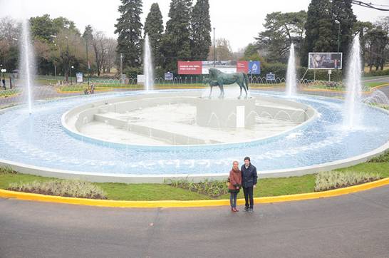 El intendente Gustavo Posse recorrió la obra junto a Vivianne Duchini, escultora animalista reconocida en el nivel internacional, que tuvo a su cargo la creación de la escultura de los dos caballos pura sangre, fundidos en bronce, que coronan la puesta en valor del lugar.