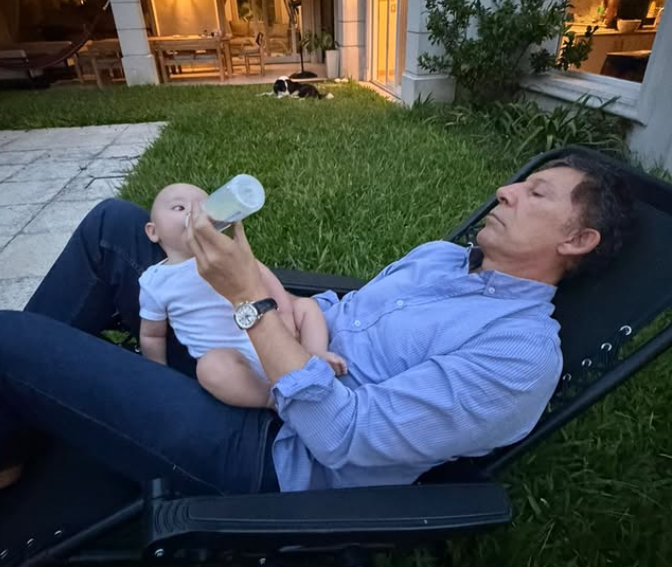 A través de su cuenta de Instagram, el histórico referente de San Isidro compartió una postal hogareña que lo muestra lejos de los actos públicos y las reuniones de gabinete. En la foto, se lo ve sentado en el jardín de su casa, disfrutando del sol y concentrado en una tarea que parece dominar con la misma precisión que la gestión pública: darle la mamadera a su pequeño nieto, Lucca.