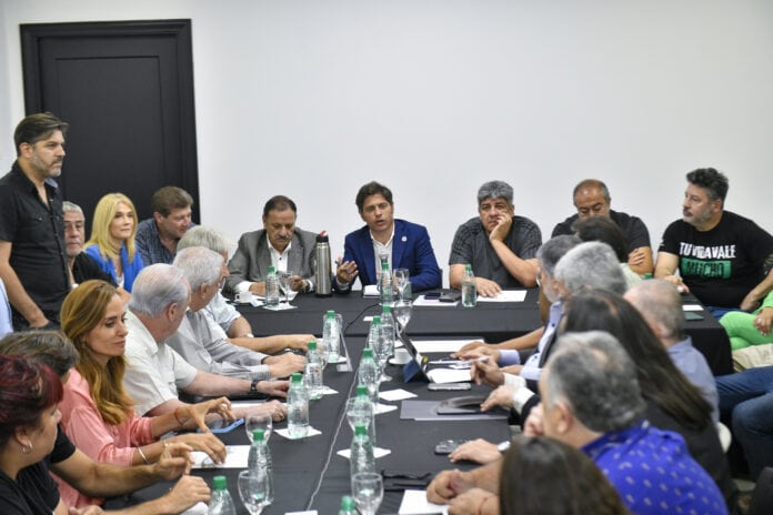 El gobernador Axel Kicillof encabezó esta tarde en la Casa de la Provincia de Buenos Aires junto a sus pares de La Rioja, Ricardo Quintela, y de Tierra del Fuego, Antártida e Islas del Atlántico Sur, Gustavo Melella, una reunión con intendentes, sindicalistas, legisladores nacionales y dirigentes de Unión por la Patria para coordinar el accionar de cara el paro general de la CGT del próximo miércoles 24 de enero. También participaron por videoconferencia los gobernadores de La Pampa, Sergio Ziliotto, de Santiago del Estero, Gerardo Zamora y de Catamarca, Raúl Jalil.