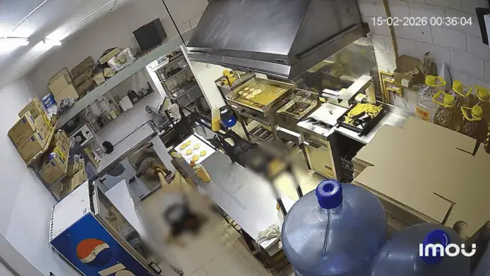 Según trascendió, las cámaras de seguridad no registraron el momento exacto del ingreso de los asaltantes debido a un corte en la transmisión, aunque sí captaron cuando el personal fue reducido. En las imágenes se observa cómo uno de los delincuentes obliga a los empleados de la cocina a avanzar hacia el sector delantero del local. “Acá adelante”, se lo escucha gritar, antes de ordenarles que se tiren al piso.