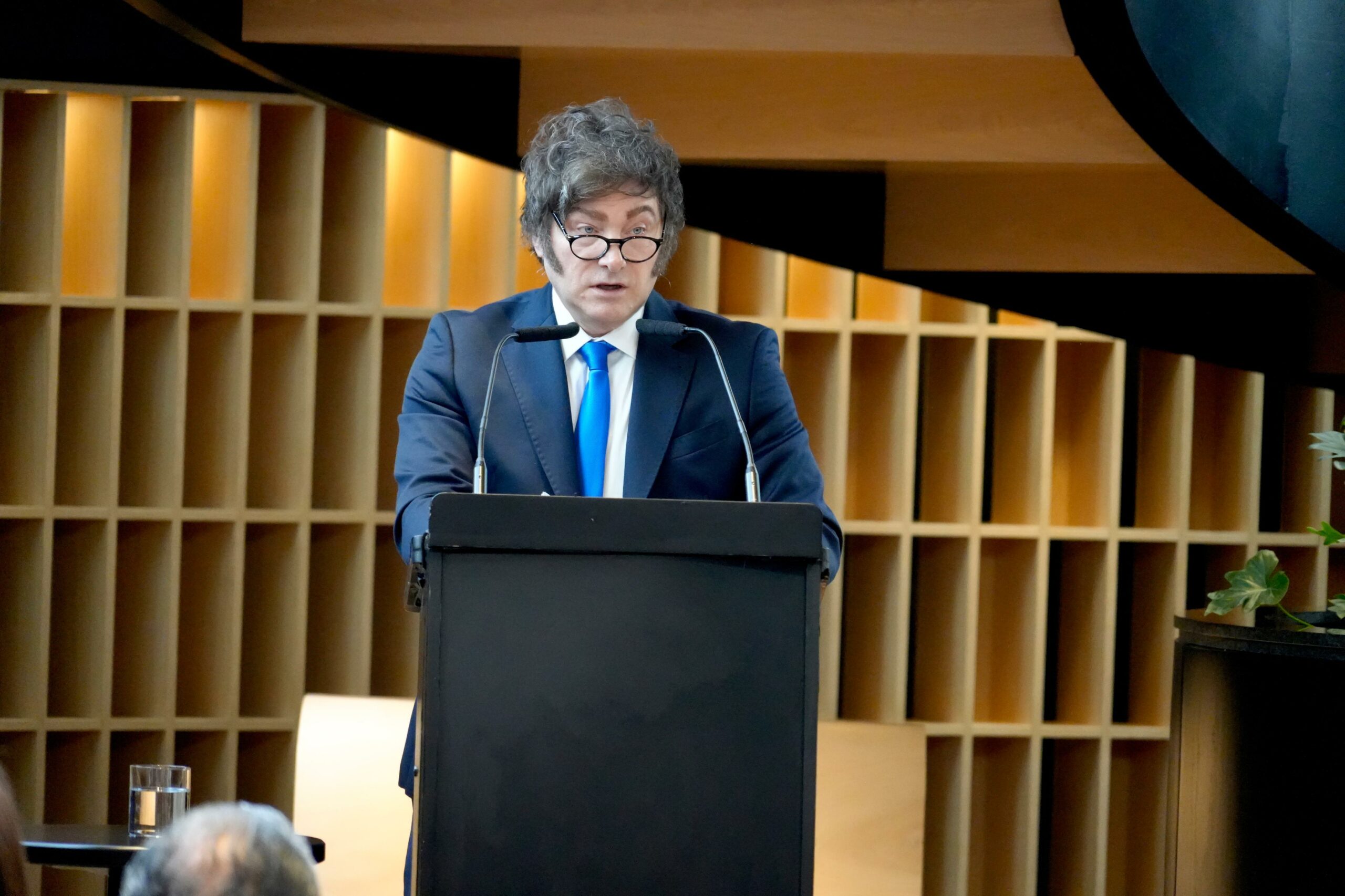 Milei había comenzando su exposición, recordando que se cumplían dos años de su triunfo presidencial contra el candidato del peronismo, Sergio Massa, en “aquel balotaje en el que los argentinos eligieron al primer presidente liberal libertario en la historia mundial”, afirmó.