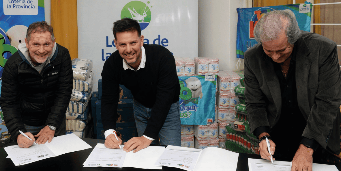 El presidente del Instituto provincial de Lotería y Casinos, Gonzalo Atanasof; junto al gerente de Telekino, Ricardo Saggese; entregó una tonelada de alimentos a la Comunidad Terapéutica “Darse Cuenta” que, desde hace 27 años, se ocupa del tratamiento, readaptación y la resocialización de personas con trastornos de consumo de sustancias en la ciudad de La Plata.