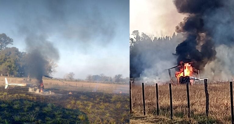 Al llegar personal policial pudo dialogar al piloto y propietario del helicóptero marca Robinson modelo LR44 cuatriplaza matrícula LV-WMB. El hombre sostuvo que al despegar tuvo un desperfecto en la aeronave, logrando aterrizar de emergencia y llegó a alejarse porque enseguida comenzó un incendio. La víctima resultó ilesa tanto en el aterrizaje apurado como del accionar del fuego que terminó destruyendo el aparato.