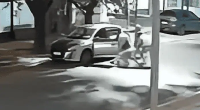Según pudo reconstruirse, todo sucedió días atrás en la esquina de Avellaneda y Maipú. Las imágenes muestran a la víctima estacionando su auto blanco sin advertir que dos ladrones caminaban por la vereda observando sus movimientos. Apenas abrió la puerta, los asaltantes se dividieron para emboscarlo: uno se acercó por delante del vehículo y el otro lo atacó por la espalda.