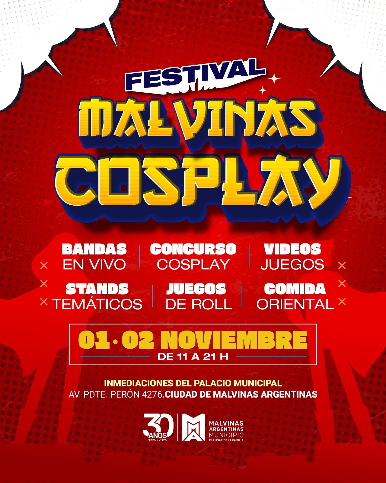 El 01 y 02 de noviembre, Malvinas Argentinas se convierte en el punto de encuentro para los amantes del cosplay, el anime, el manga y la cultura geek. Habrá concursos, shows, torneos, trivias y mucho más. La entrada es libre y gratuita, en las inmediaciones del Palacio Municipal.
